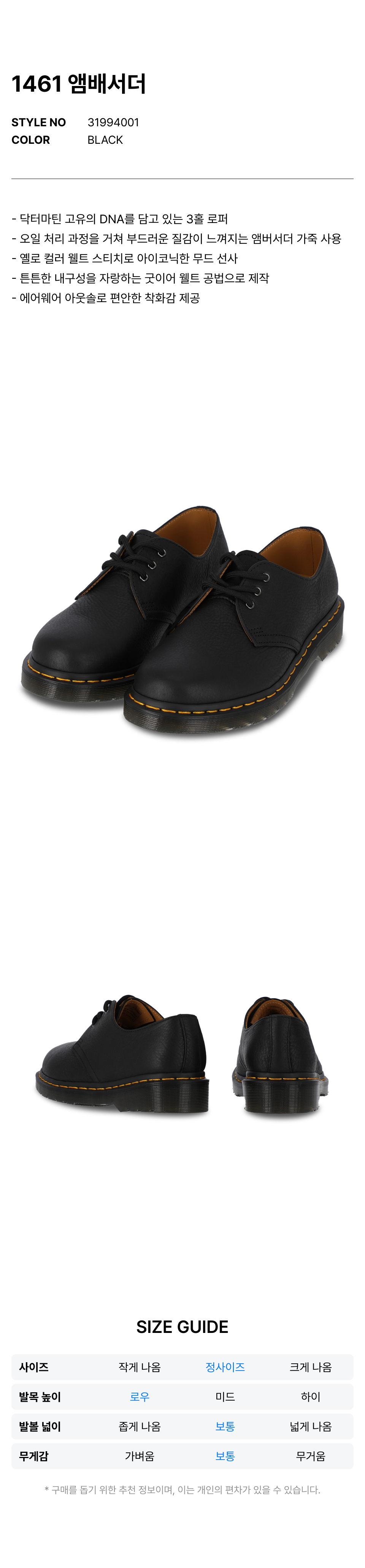 [3천원 결제혜택] 1461 3홀 블랙 스무스 / 11838002