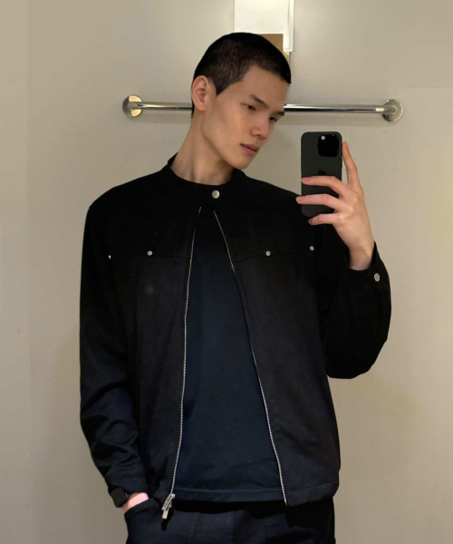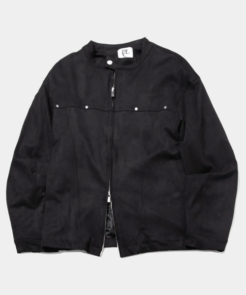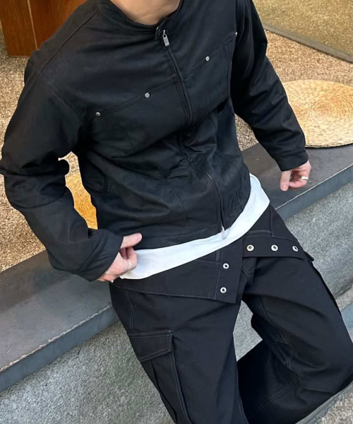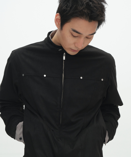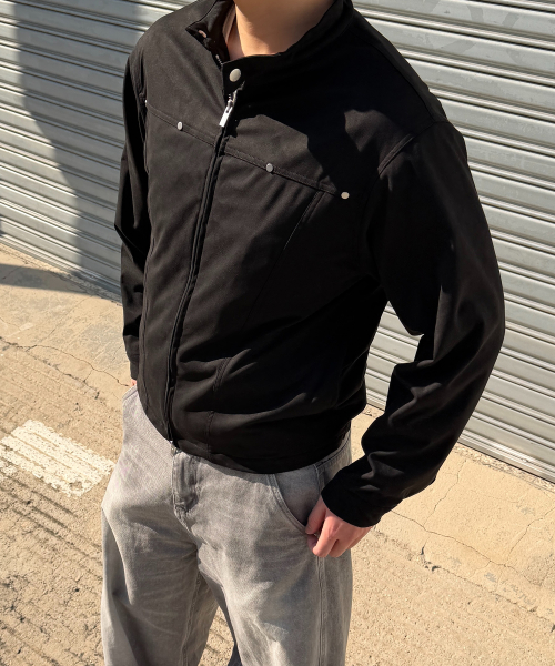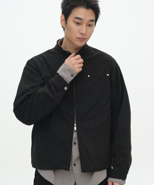 스웨이드 리벳 포인트 스탠다드 투웨이 스냅 블루종 자켓 [블랙]