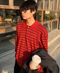 멀티 스트라이프 카라 크롭 니트 [레드]