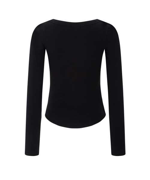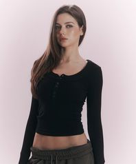 Tanny Button Ribbed Long Sleeve Top (Black)