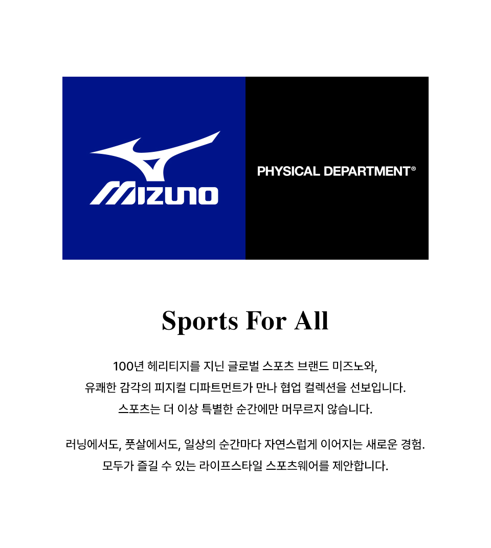 피지컬 디파트먼트(PHYSICAL DEPARTMENT)는 직관적이고 클래식한 스포츠 웨어와는 다르게, 조금 더 YOUNG 하고 캐주얼한 느낌의 스포츠 웨어 스타일을 제안합니다. 체육 학과, 체육부 등에서 영감받아 전개하는 브랜드입니다.