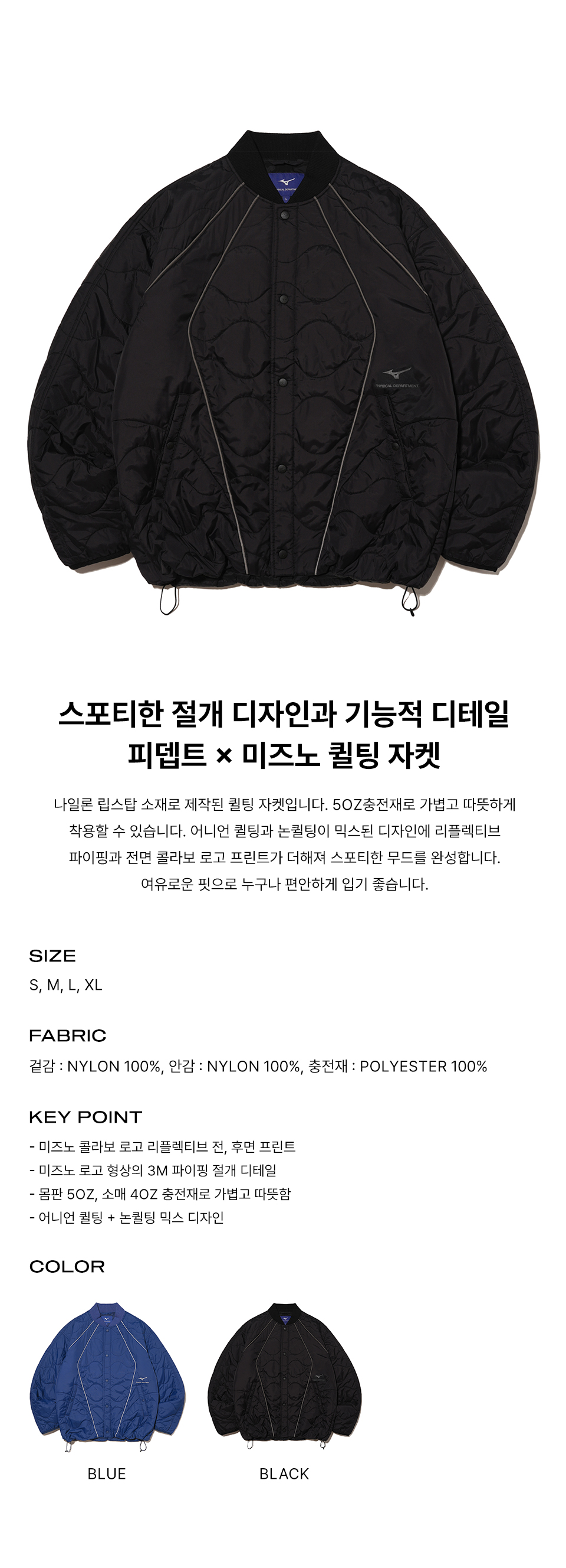 피뎁트 X 미즈노 파이핑 퀄팅자켓 블랙