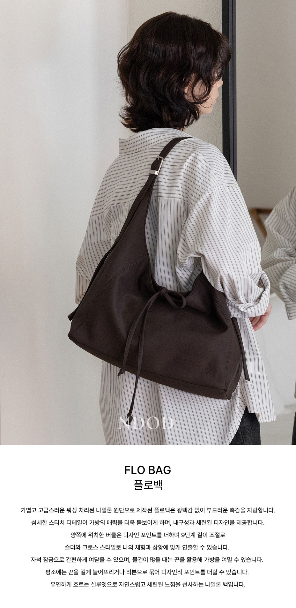 엔디오디(NDOD)는 자유로운 삶의 태도에서 영감을 받아, 다양한 소재와 실용적인 디자인으로 일상과 여행에 어울리는 가방을 제안하는 브랜드입니다.