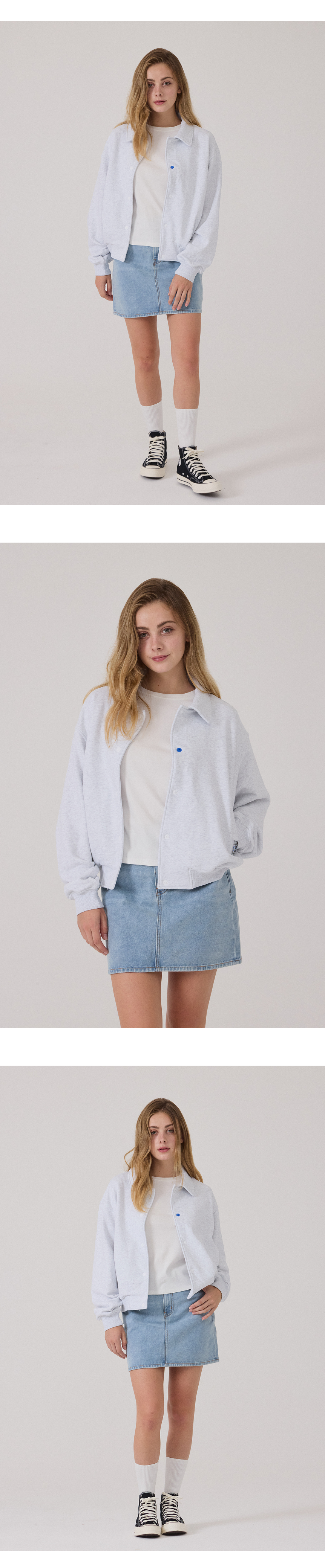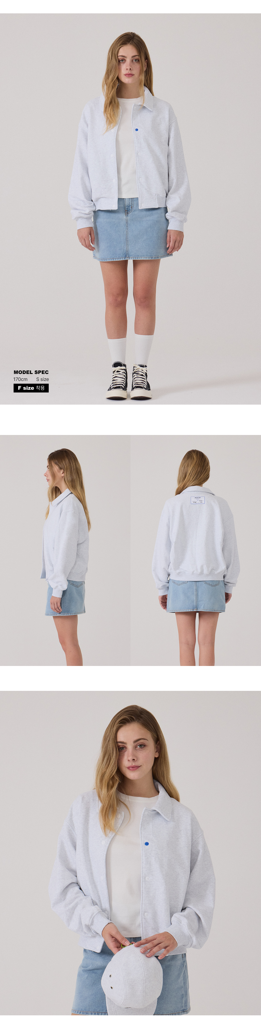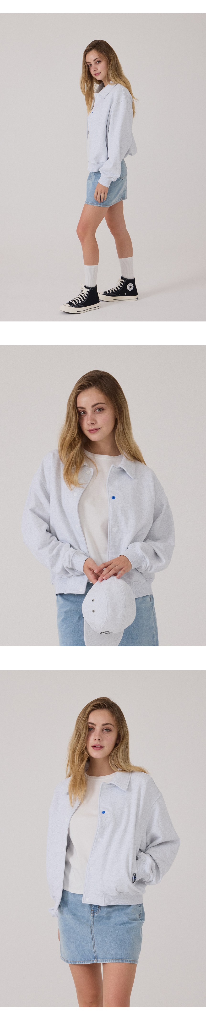 시그니처 바시티 자켓 우먼_그레이