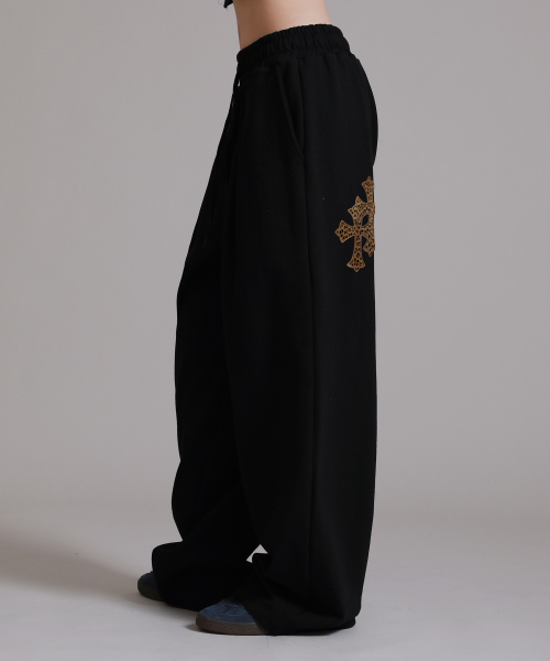 [UNISEX]DOT CROSS 로고 자수 트레이닝 와이드 팬츠_2color