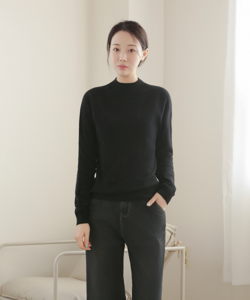 울 100% 라운드넥 라그란 7부소매 니트_블루