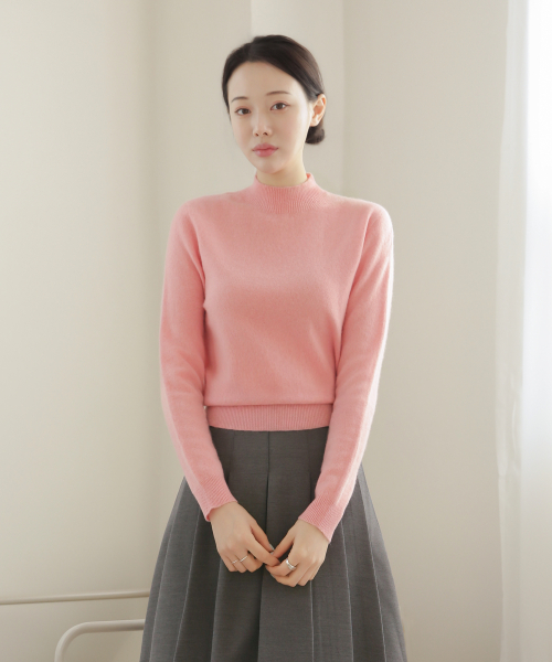 밀라 편하게 입는 여성 라운드넥 니트 스웨터_핑크