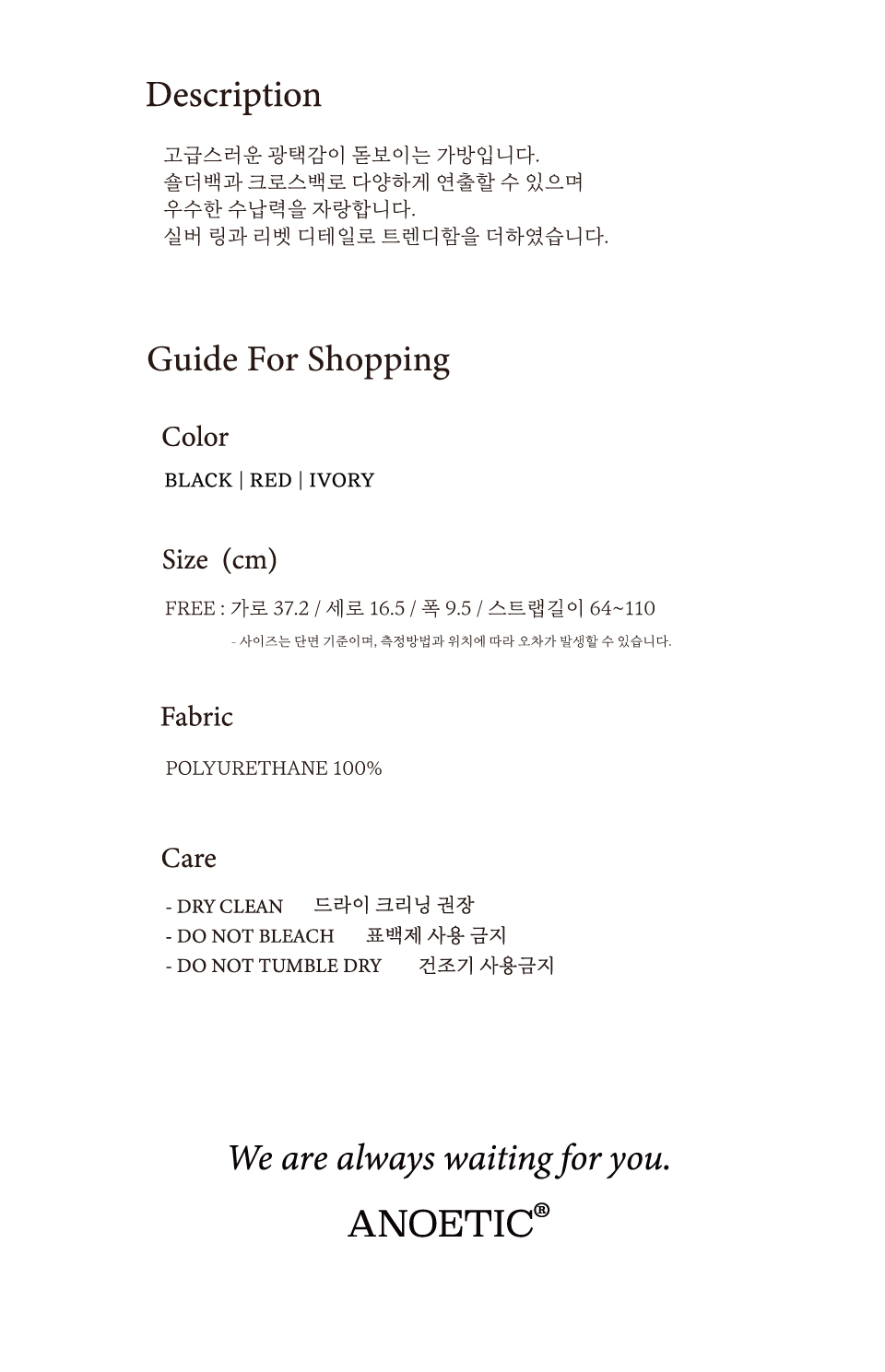 아노에틱(ANOETIC)은 컨템포러리하고 절제된 디자인을 추구하면서도 남들과 다른, 기존에 없는 디자인을 추구하는 브랜드입니다.