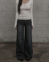 로우라이즈 페이디드 워싱 부츠컷 팬츠 [그레이쉬 틴 블루]
