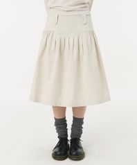 PLEATED COTTON MIDI SKIRT, BEIGE