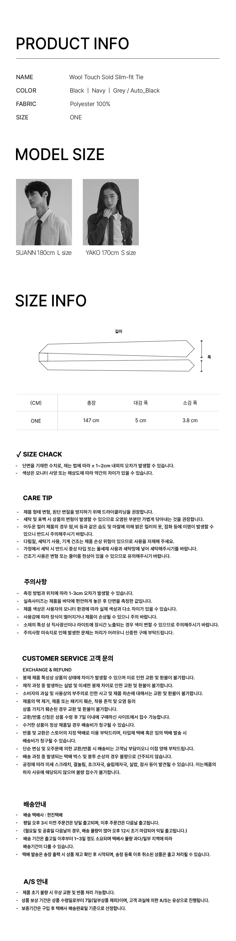 울 터치 솔리드 슬림핏 타이_3colors (자동/수동)