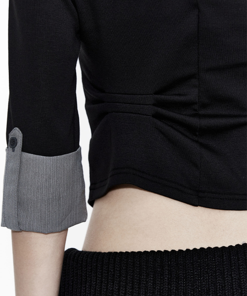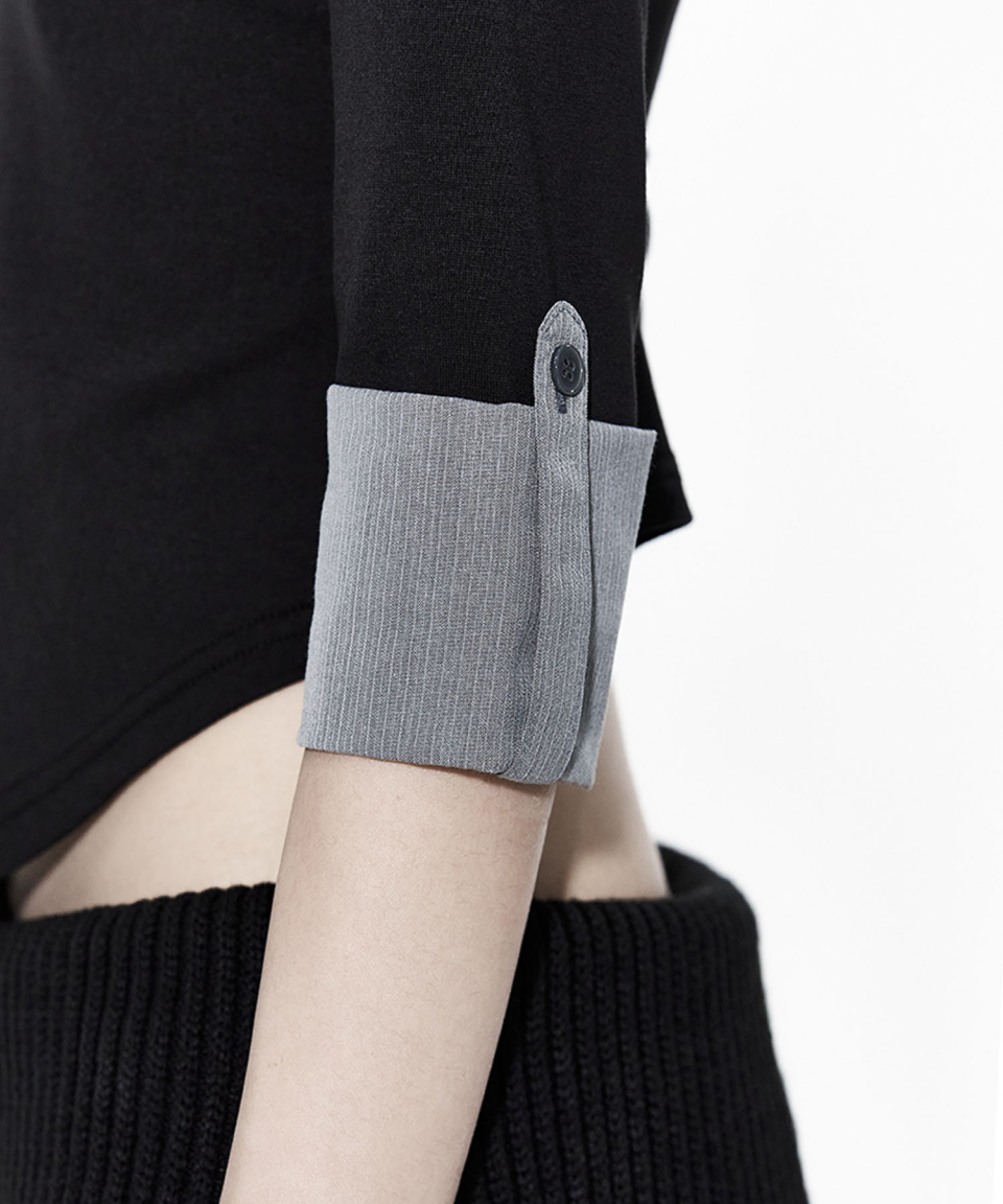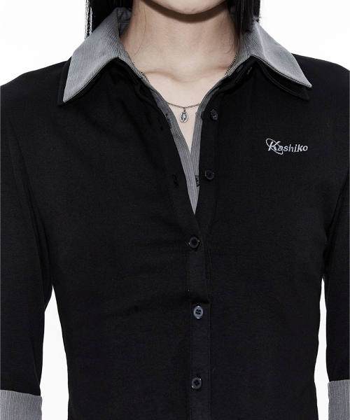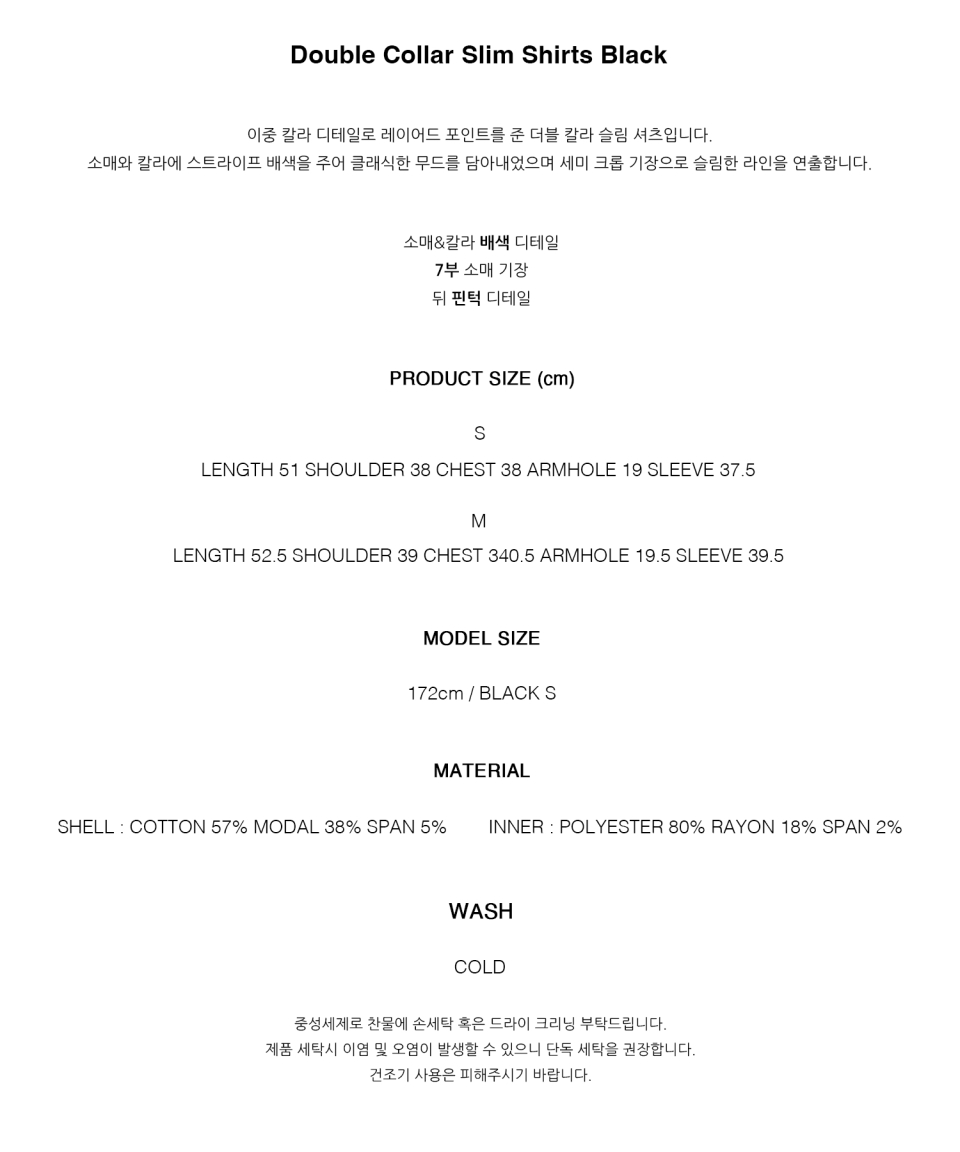 Double Collar Slim Shirts Black