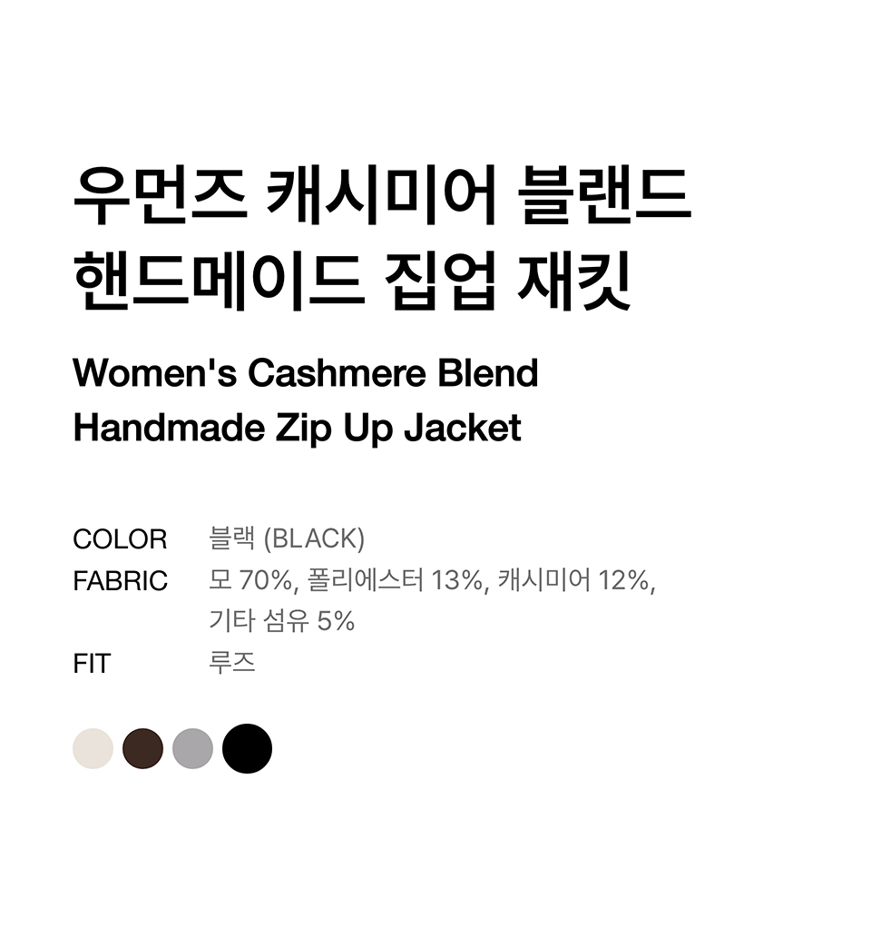 우먼즈 캐시미어 블랜드 핸드메이드 집업 재킷 [블랙]