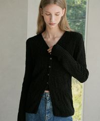 V-neck Ribbed Slim Knit Cardigan (black)