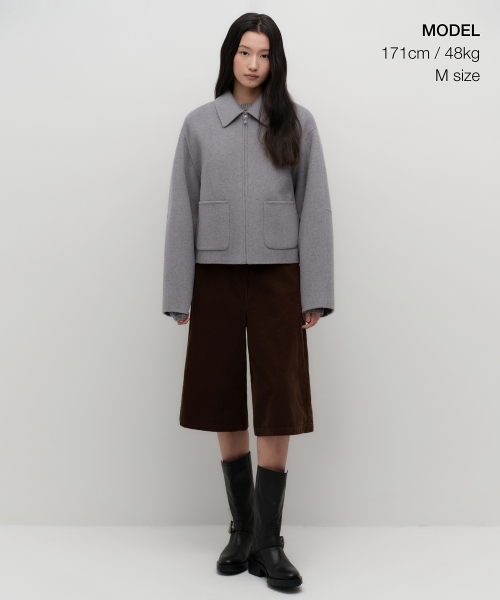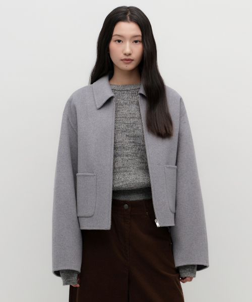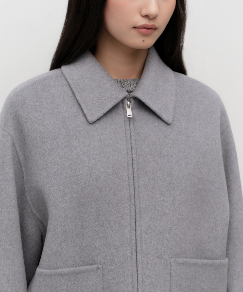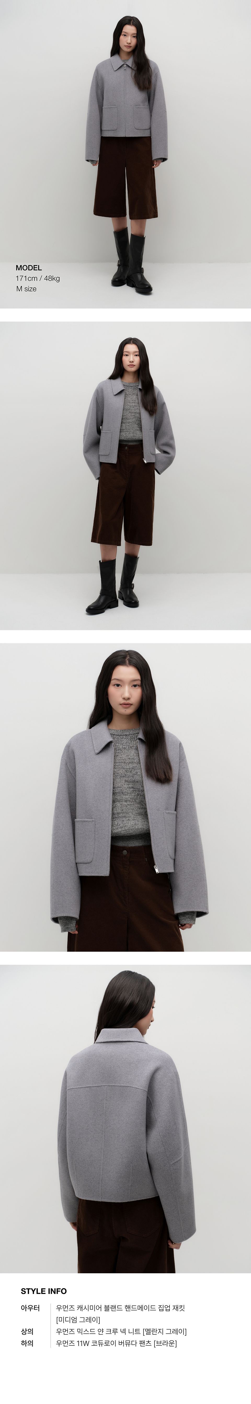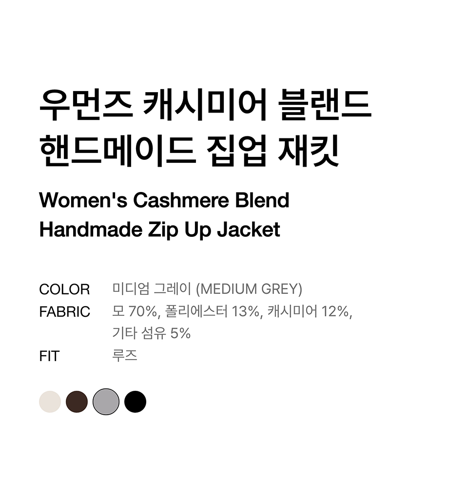 우먼즈 캐시미어 블랜드 핸드메이드 집업 재킷 [미디엄 그레이]