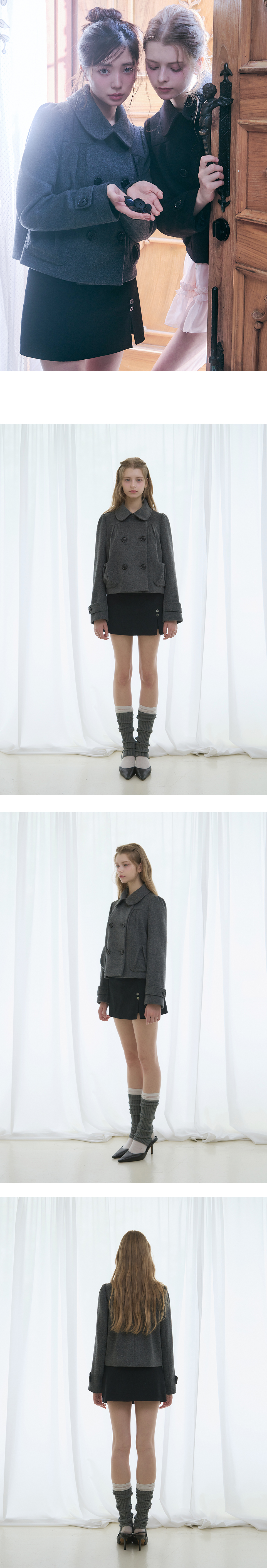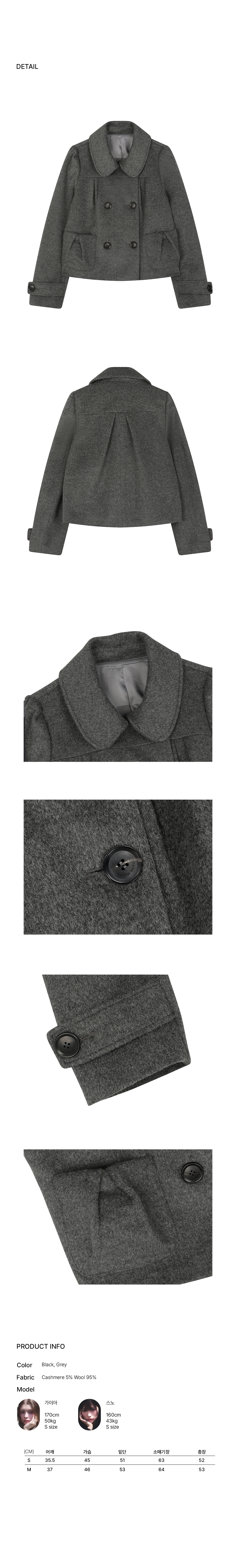 캐시미어 로제 더블 숏 코트 [GREY]