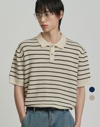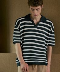 이지온 세미 오버핏 스트라이프 카라 반팔 니트 (2color)