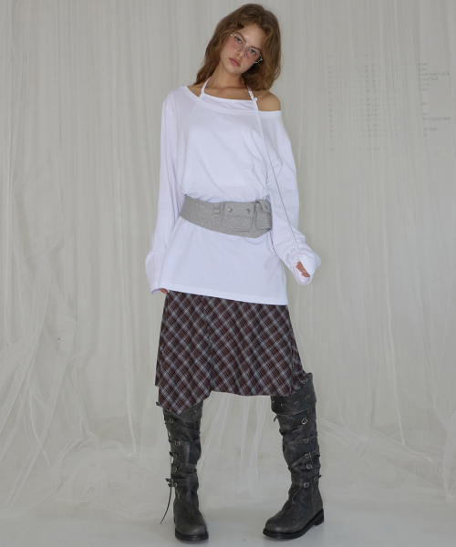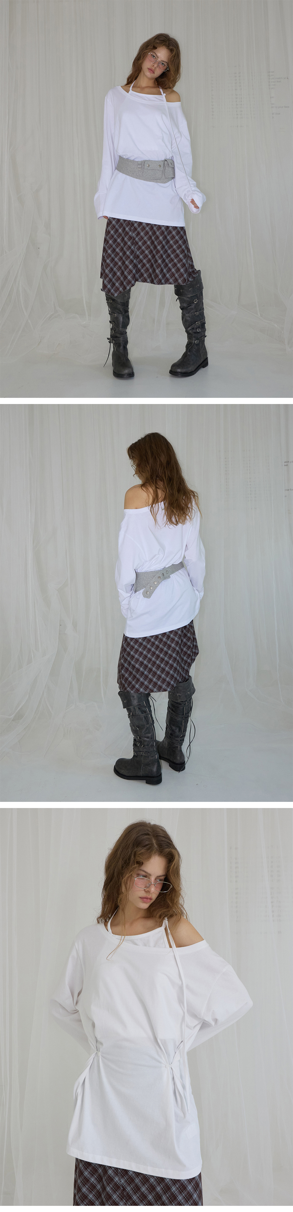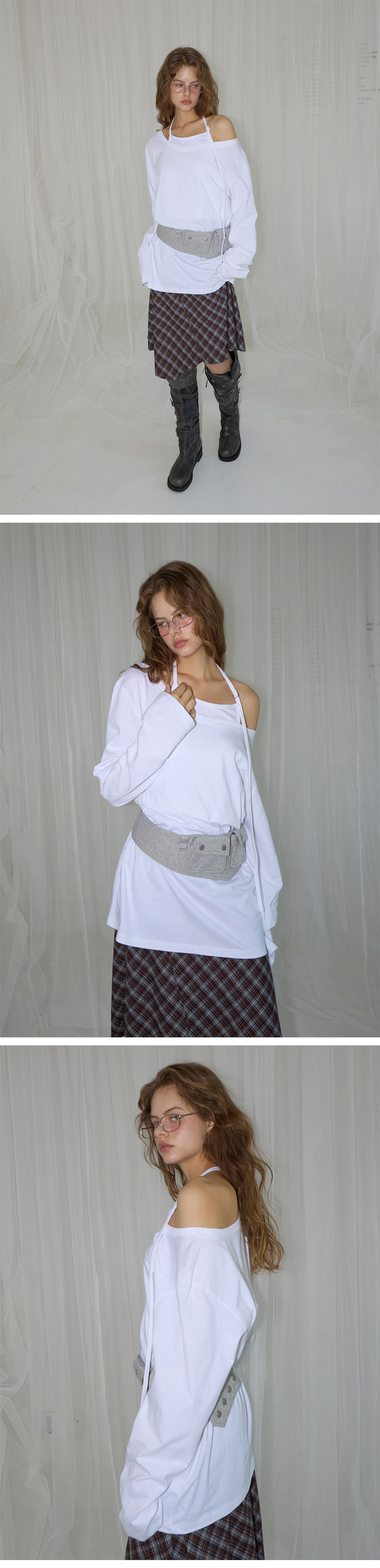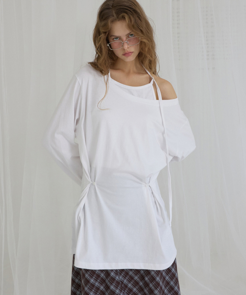 크로스 오너먼트 오프숄더 래글런 롱 슬리브 - WHITE