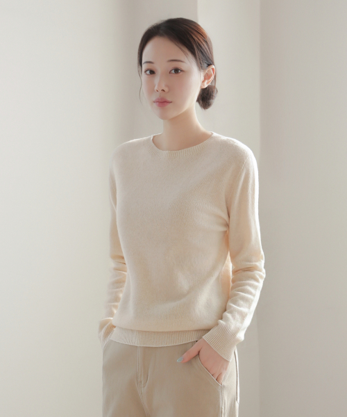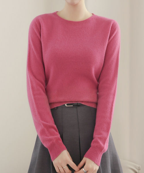 울 100% 라운드넥 니트 스웨터_핑크