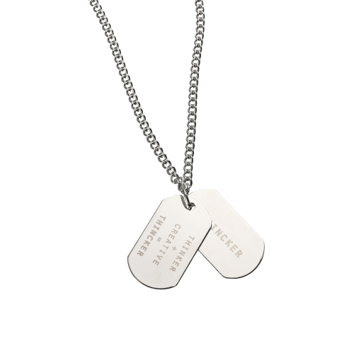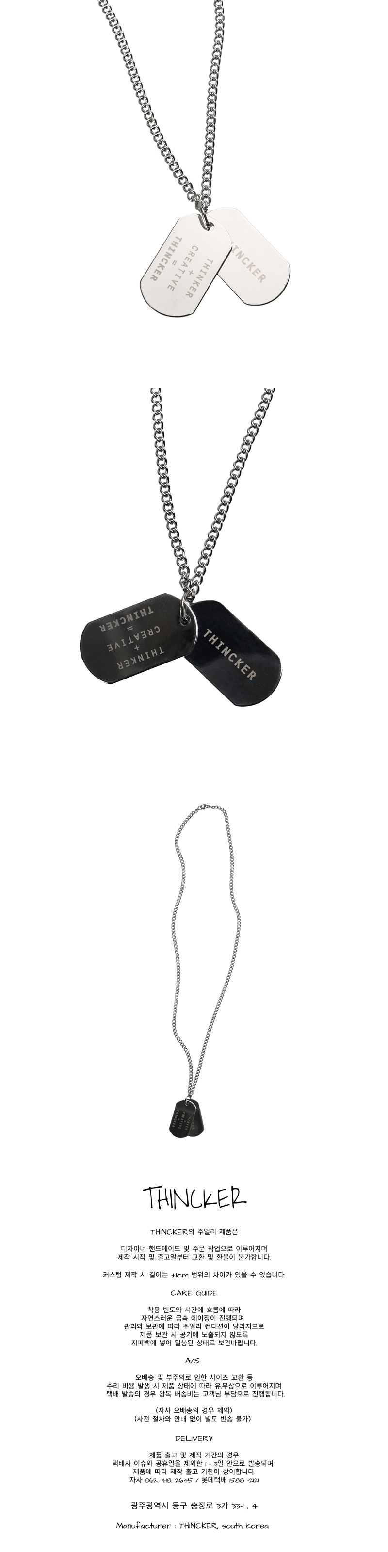 띵커의 로고와 브랜드 메시지를 각각 담은 두 개의 펜던트가