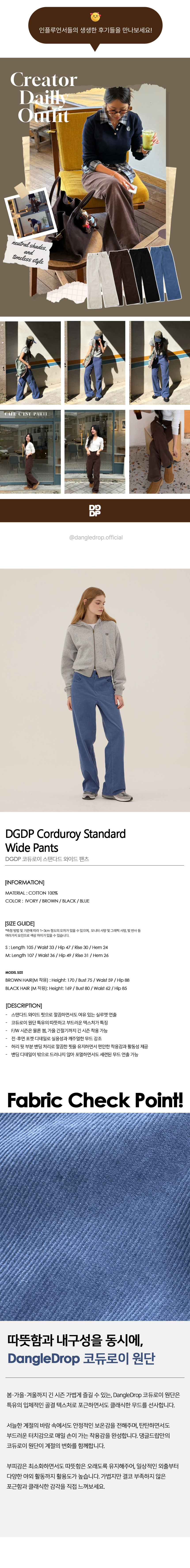 DGDP 코듀로이 스탠다드 와이드 팬츠_블루