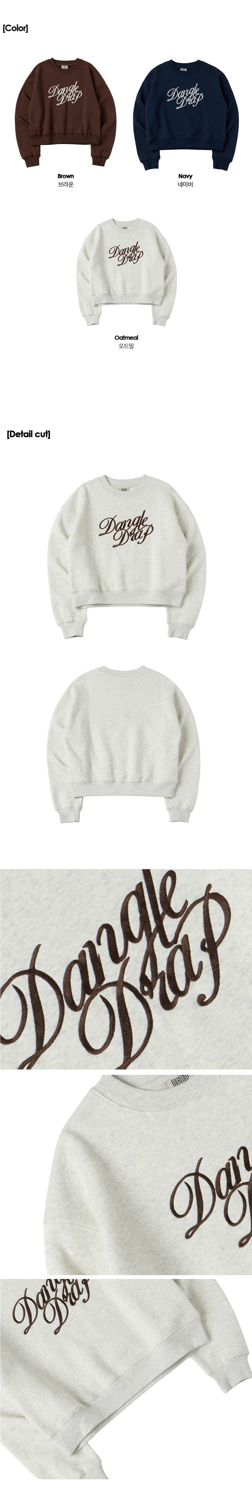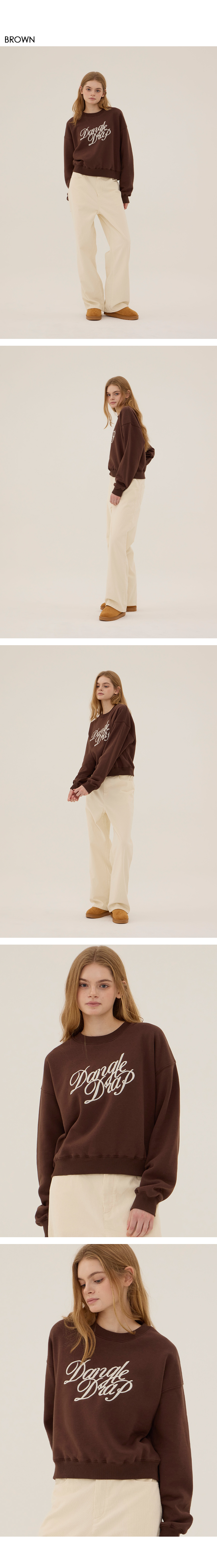 DGDP 레터링 자수 크롭 맨투맨_브라운