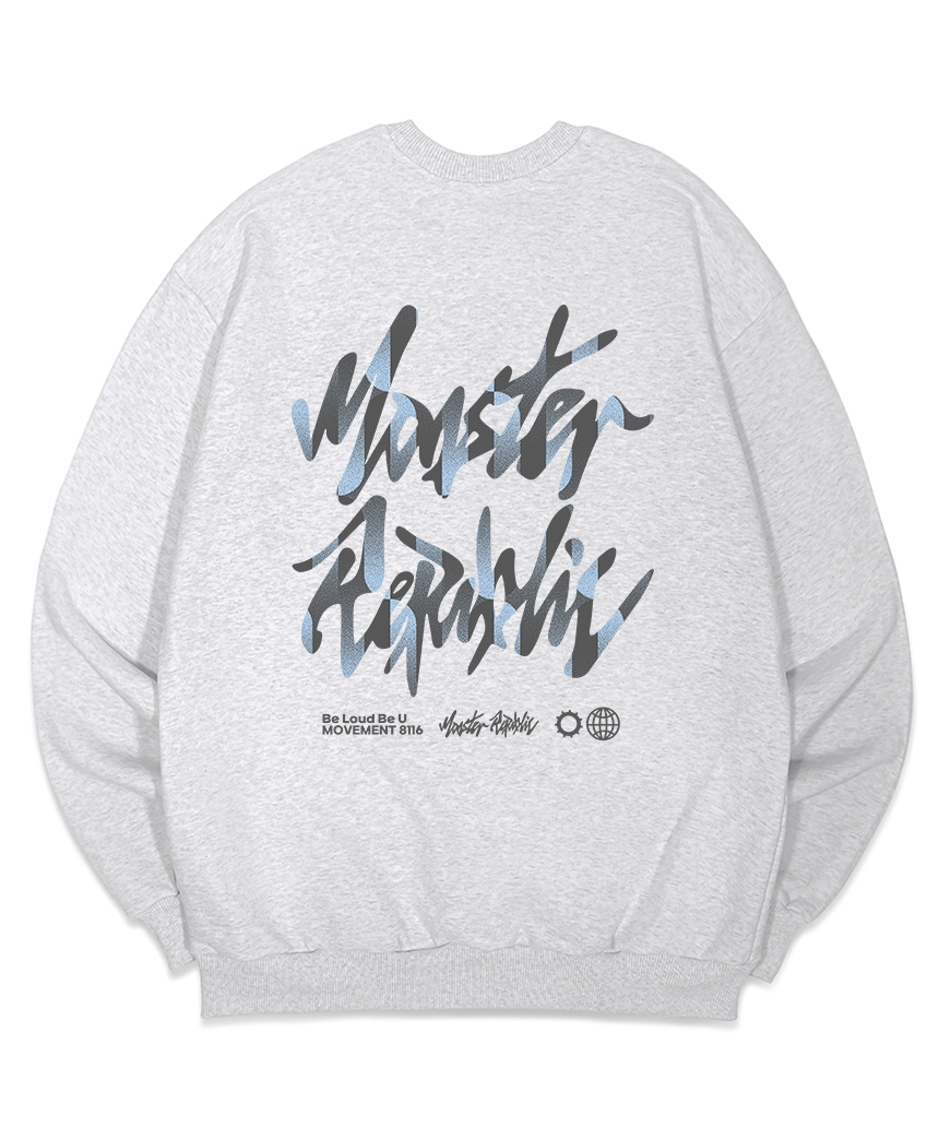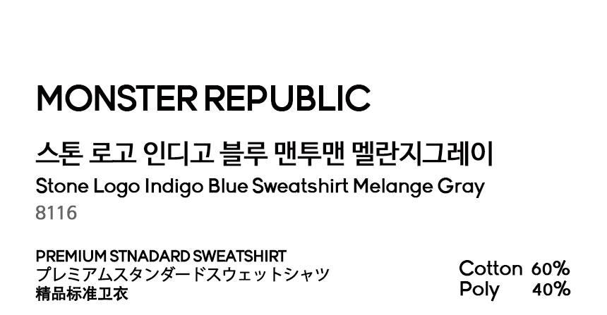 스톤 로고 인디고 블루 맨투맨 멜란지그레이_8116