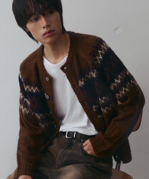 다이아 헤어리 브러쉬 노르딕 가디건 [브라운]