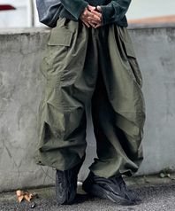 엠엘 나일론 와이드 벌룬 스트링 팬츠 [카키]