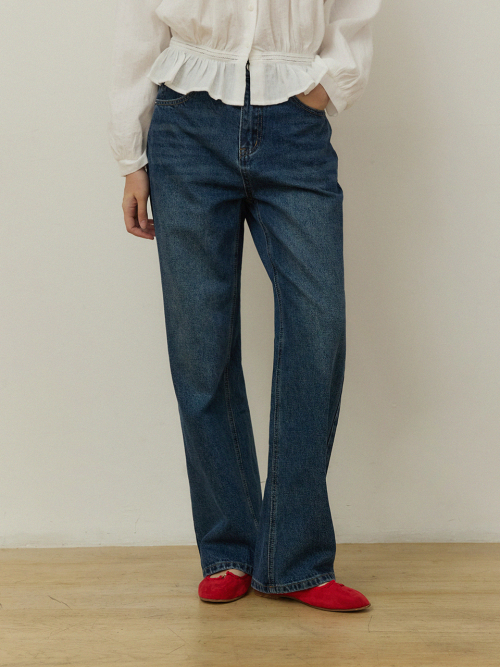 비즈 코튼 스트레이트 와이드 팬츠 - 베이지