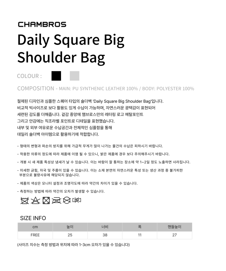데일리 스퀘어 빅 숄더백[블랙]