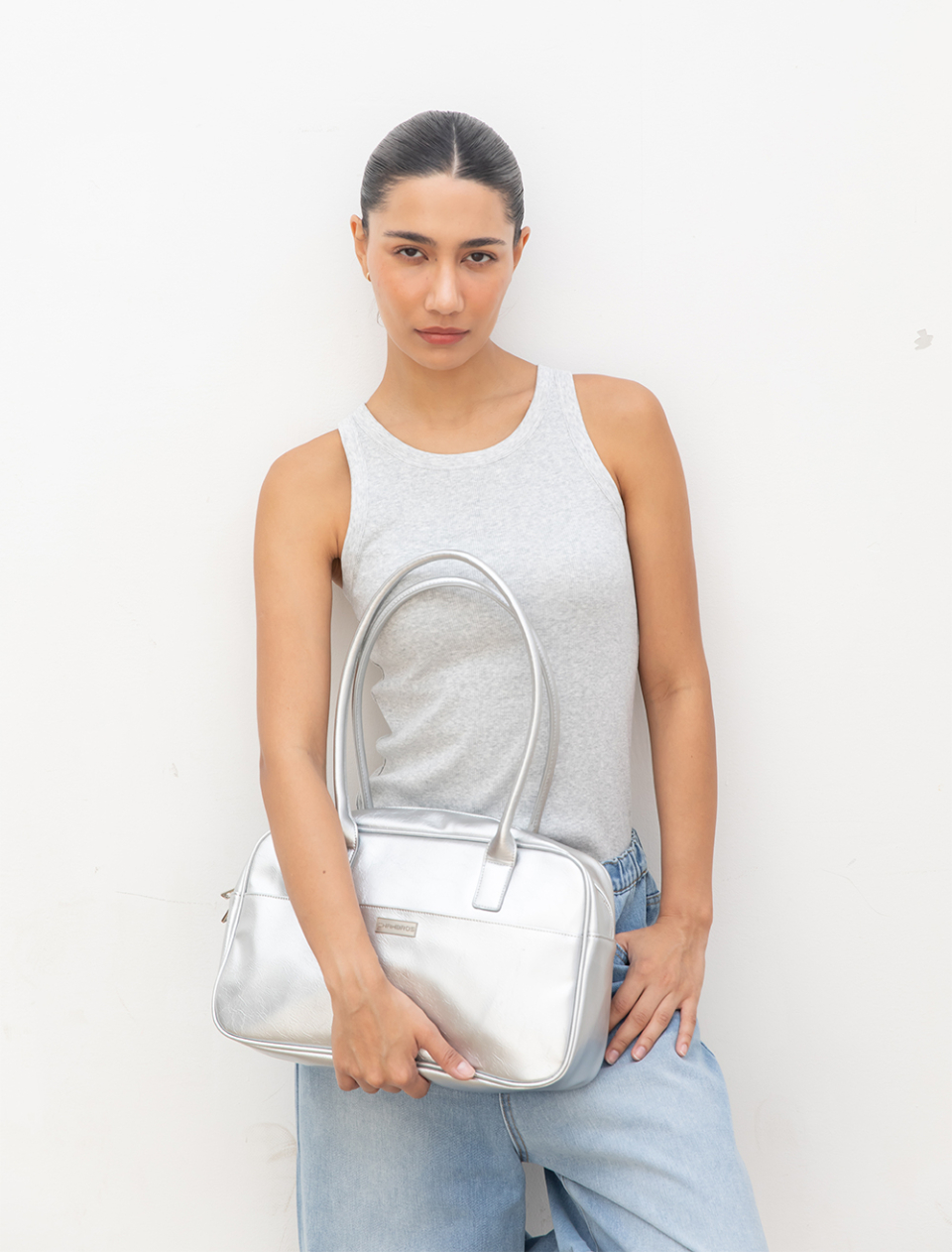 데일리 스퀘어 빅 숄더백[실버]