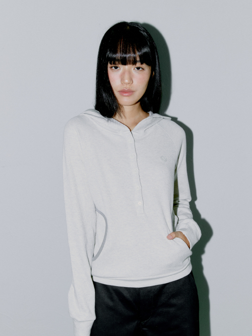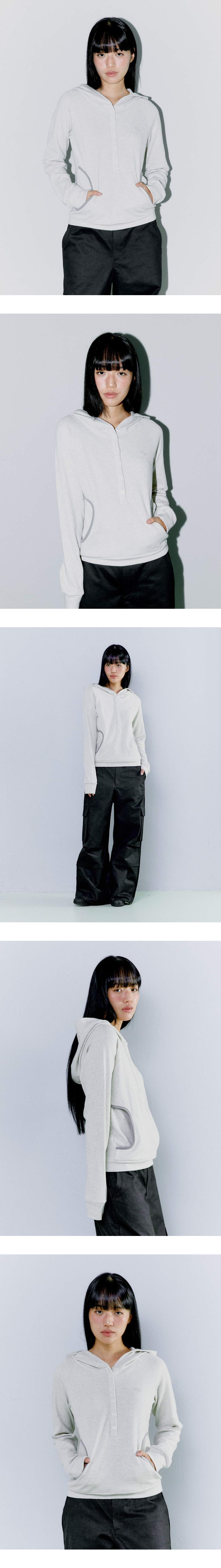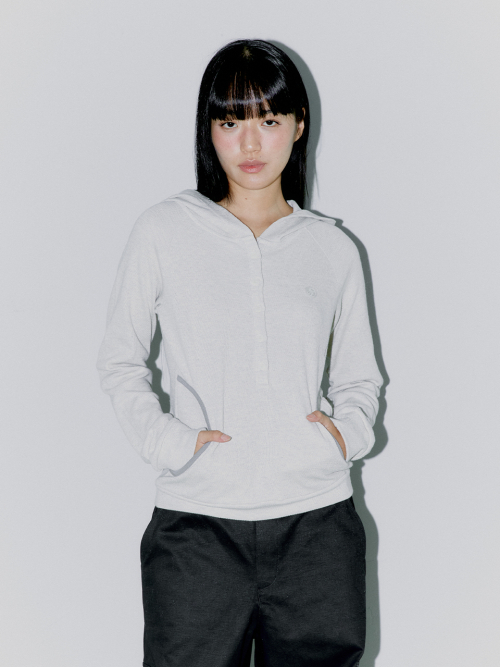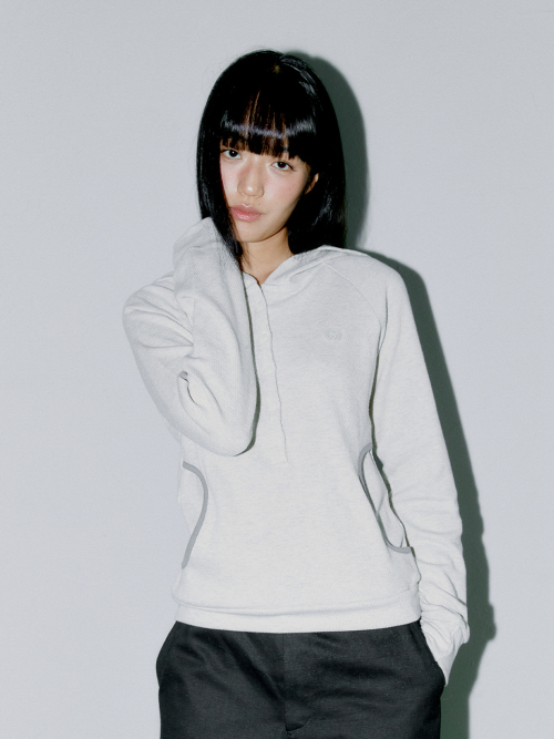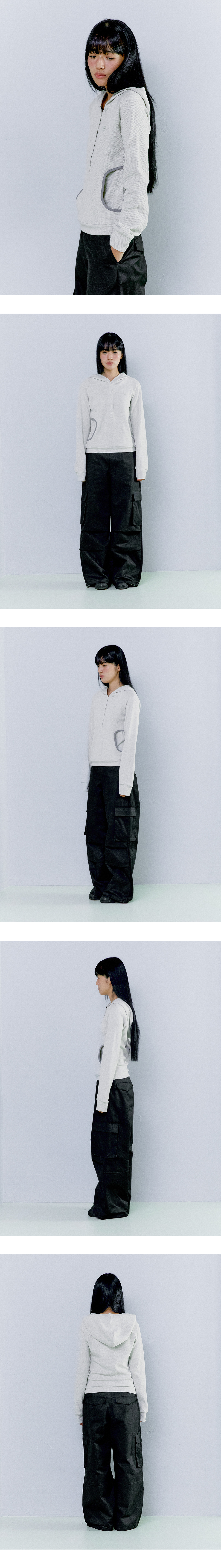 ROUND POCKET HOODIE ZIP UP [MELANGE GREY]