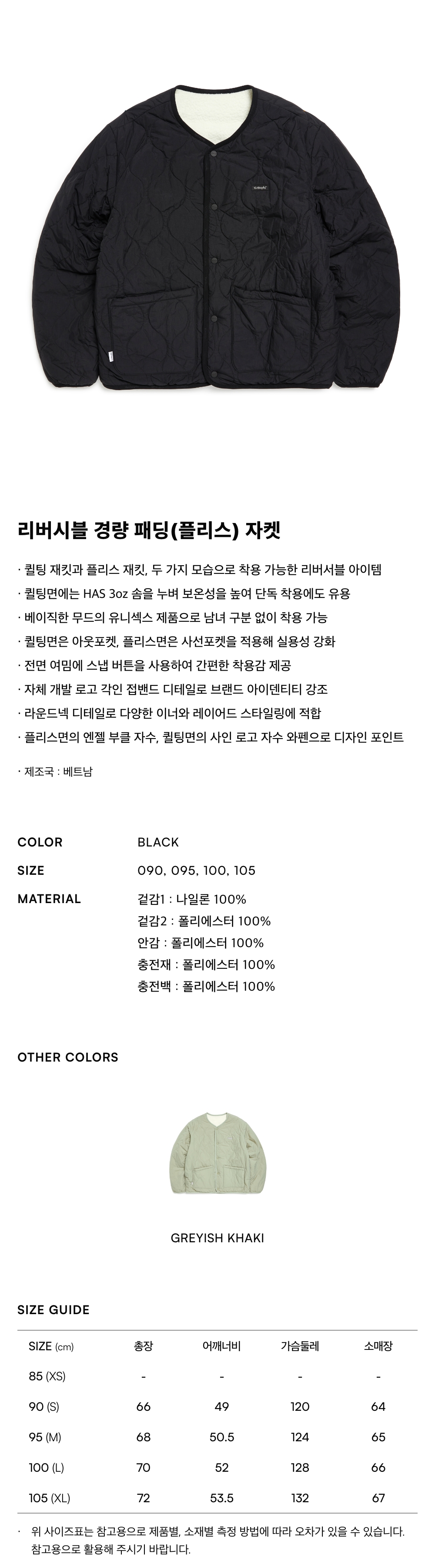 리버시블 경량 패딩(플리스) 자켓 - BLACK