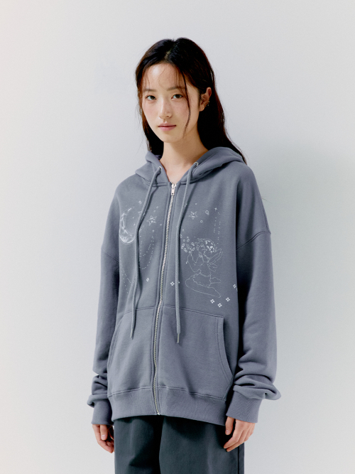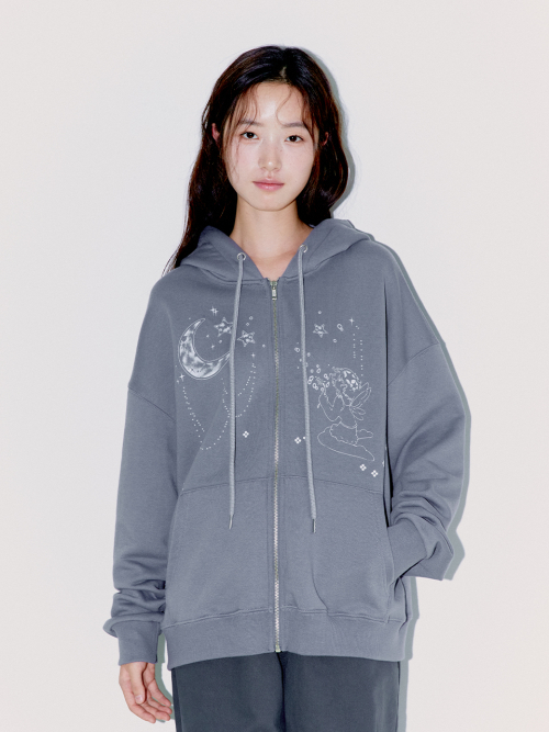 MOONLIGHT WISH HOODIE ZIP UP BLUE GRAY
