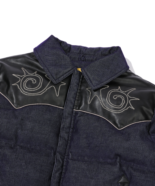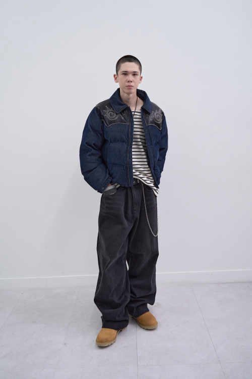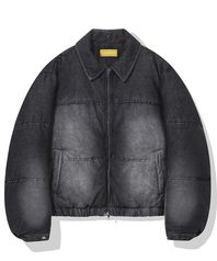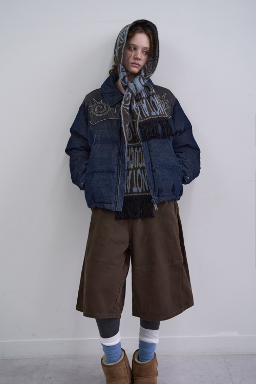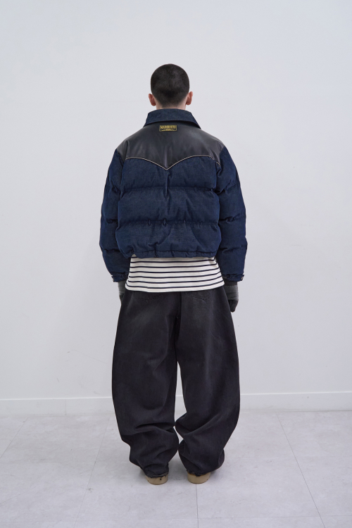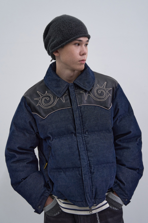 Vintage Denim Puffer Jacket(BLACK)