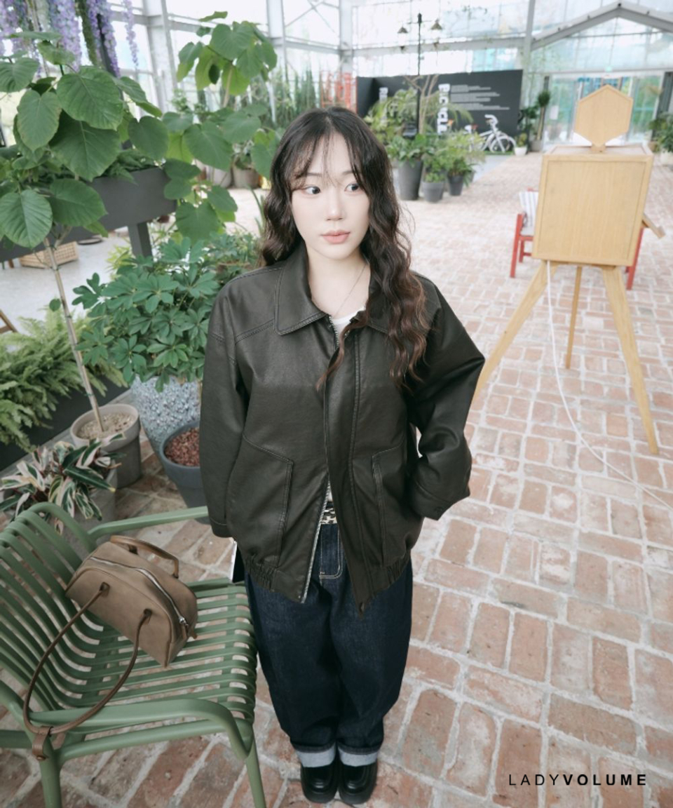 465-1 비건 레더 오버핏 자켓