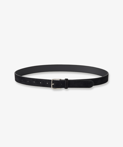 Classic Silver Buckle Suede Belt - Black