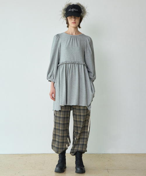 퍼프 슬리브 저지 드레스 [멜란지 그레이]