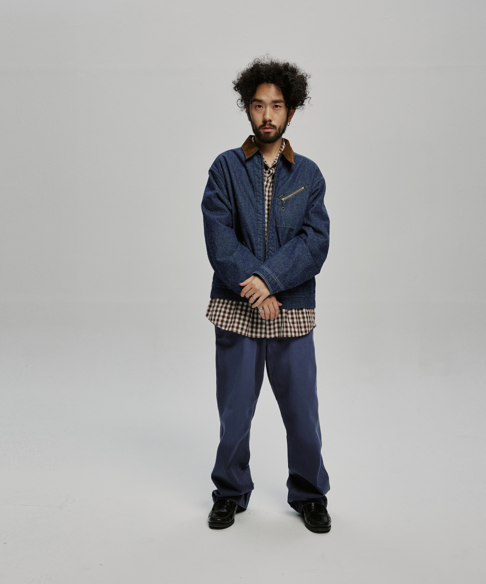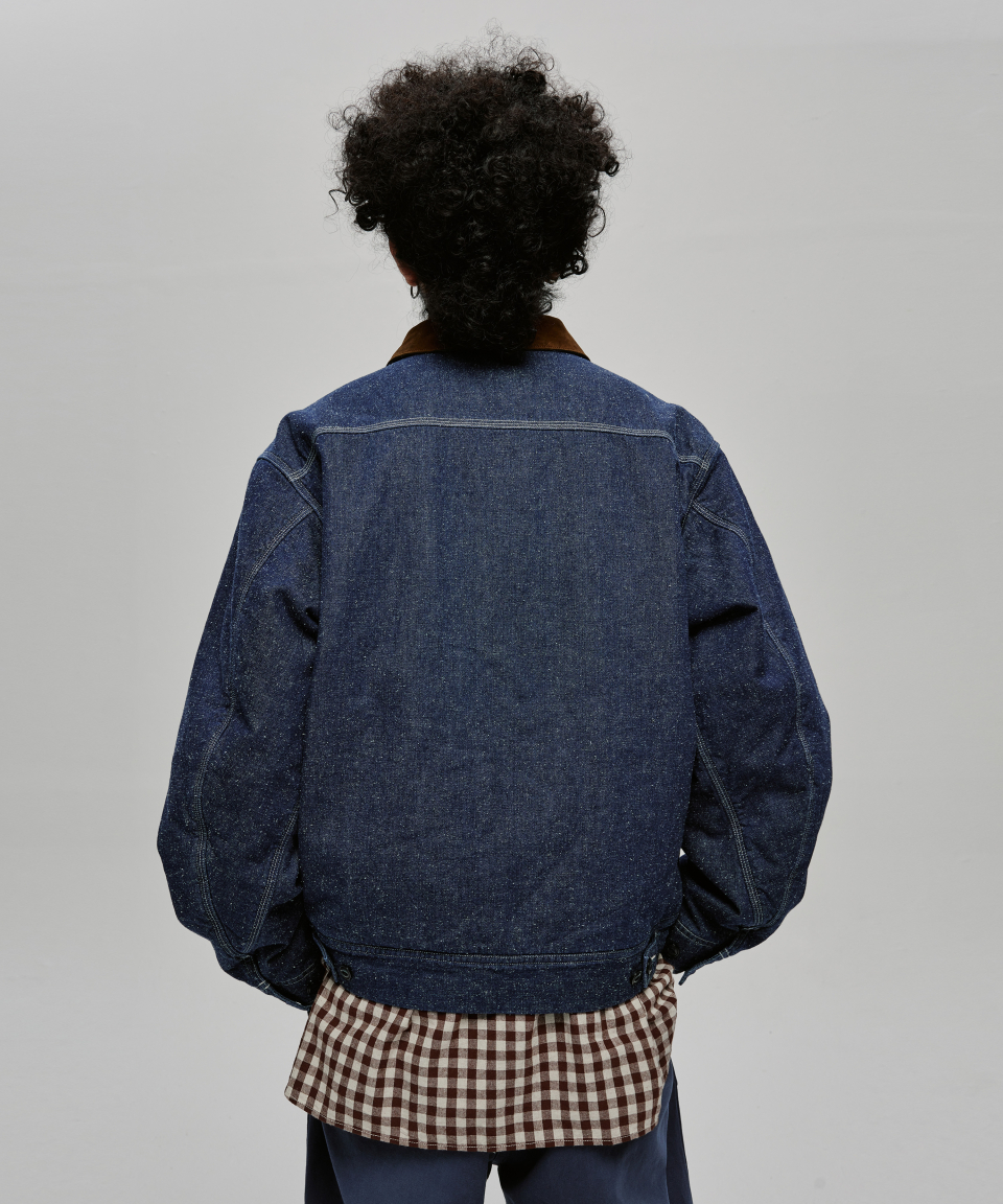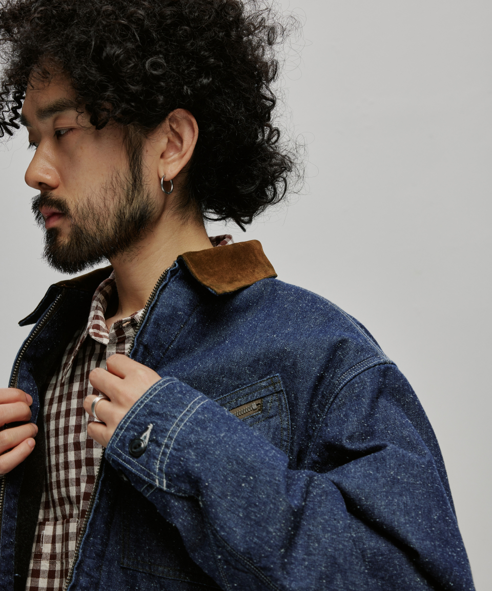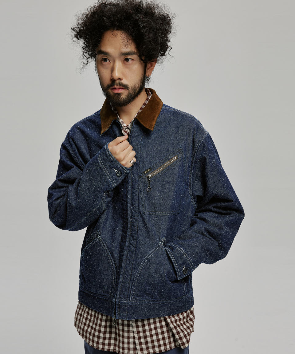 9.5oz 네프가 강하게 드러나는 데님 패브릭에 가벼운 워싱을 더해 자글거리는 표면감을 구현했으며, 오리지널의 코듀로이 카라는 스웨이드로 대체해 한층 포멀한 인상을 더했습니다.