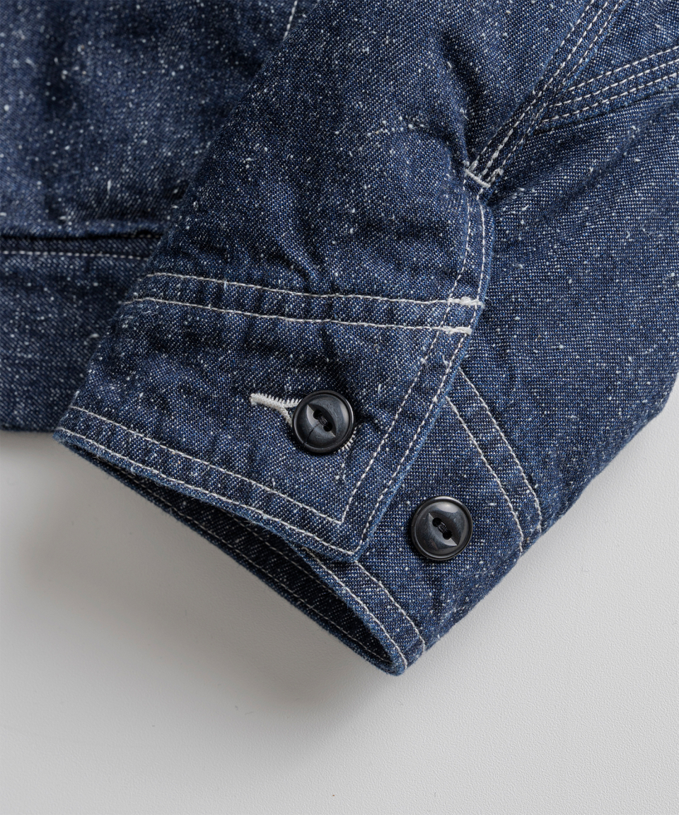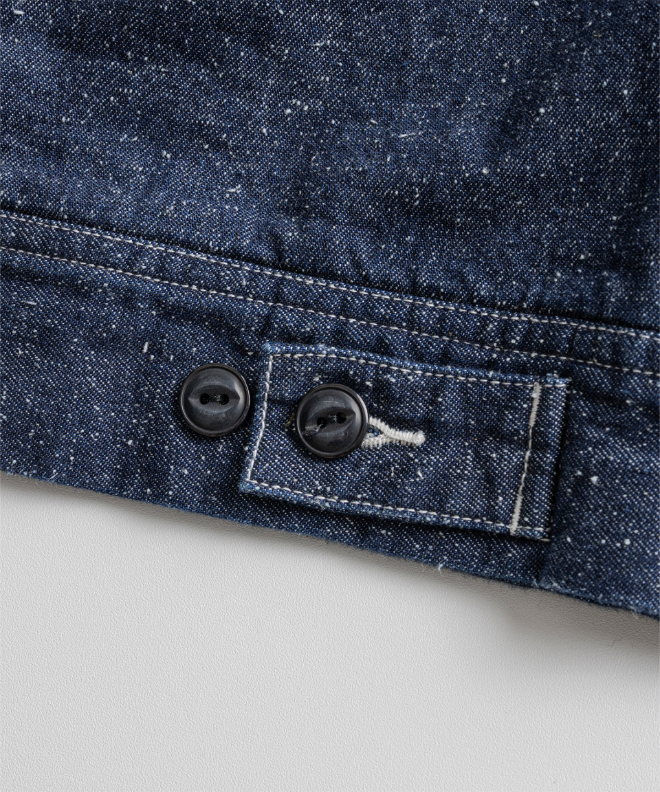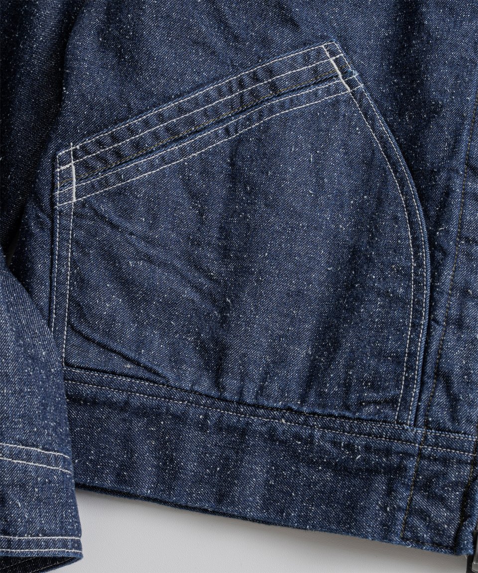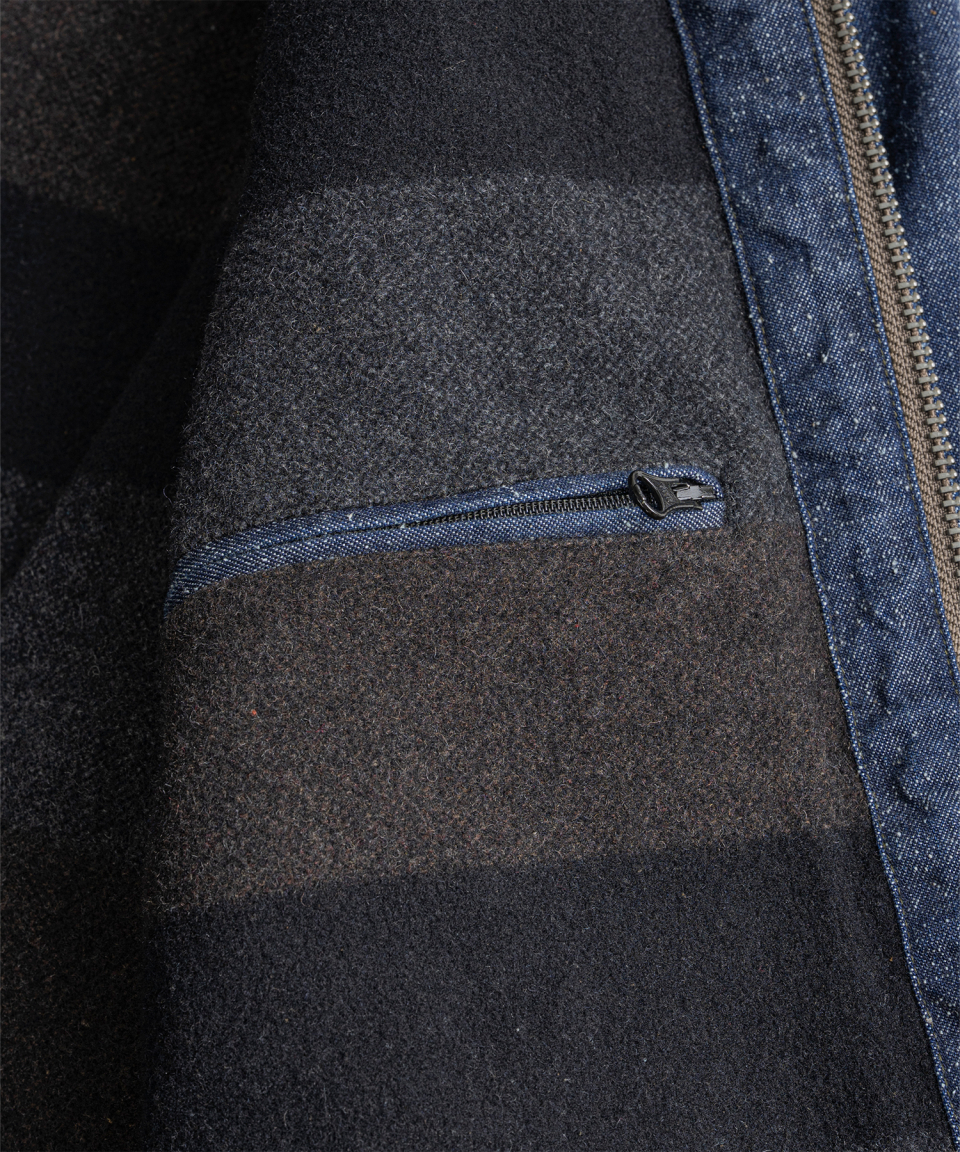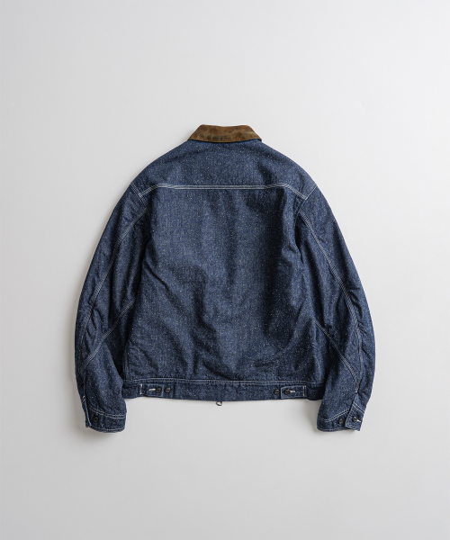 9.5oz 네프가 강하게 드러나는 데님 패브릭에 가벼운 워싱을 더해 자글거리는 표면감을 구현했으며, 오리지널의 코듀로이 카라는 스웨이드로 대체해 한층 포멀한 인상을 더했습니다.