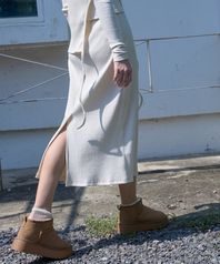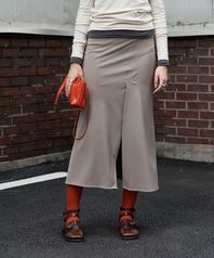 H-line slit long skirt Khaki beige