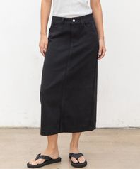우먼즈 베이직 코튼 데님 롱 스커트[블랙]