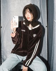 OVERSIZE VELOUR V-NECK L/S TEE(BROWN)