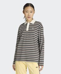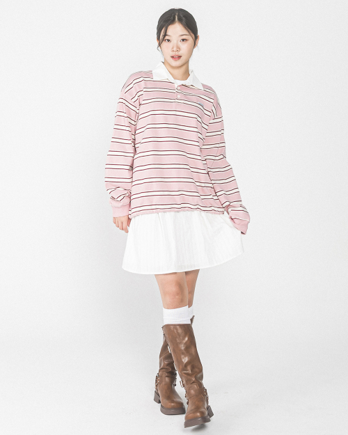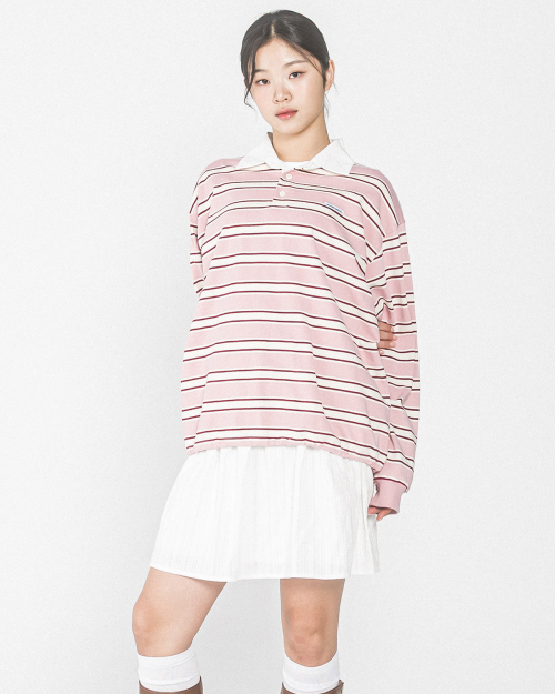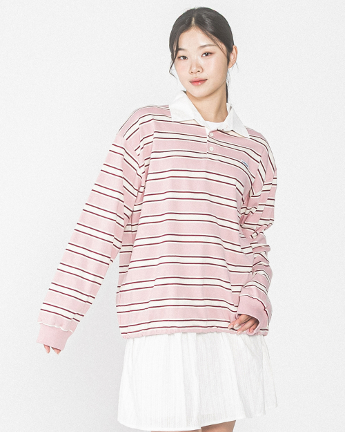 스트라이프 오버사이즈 롱 슬리브 폴로 티셔츠 - 아우라커피 / KU8352