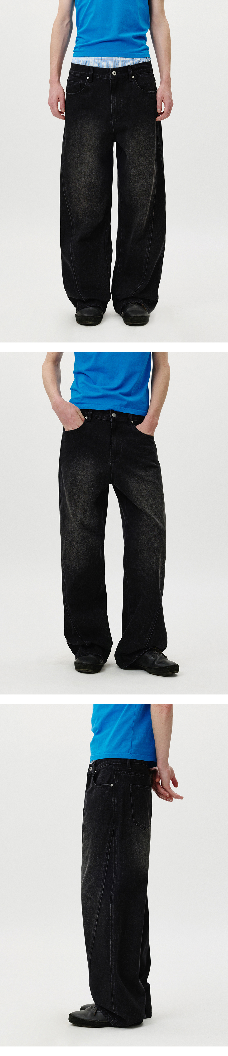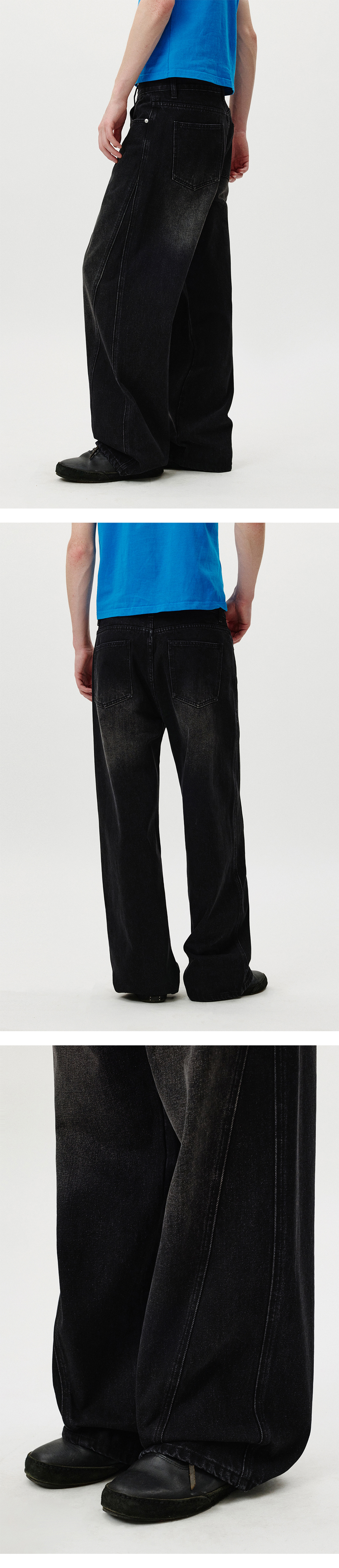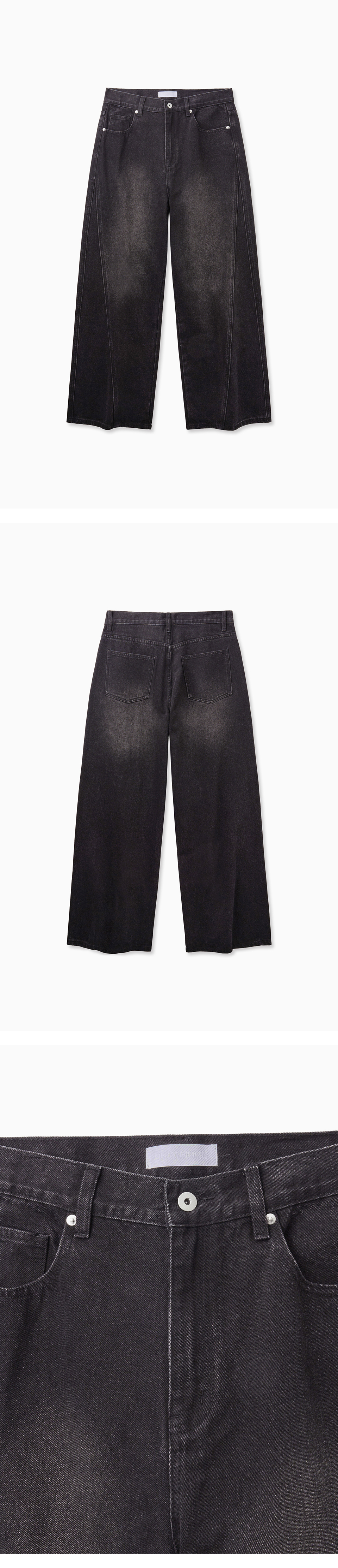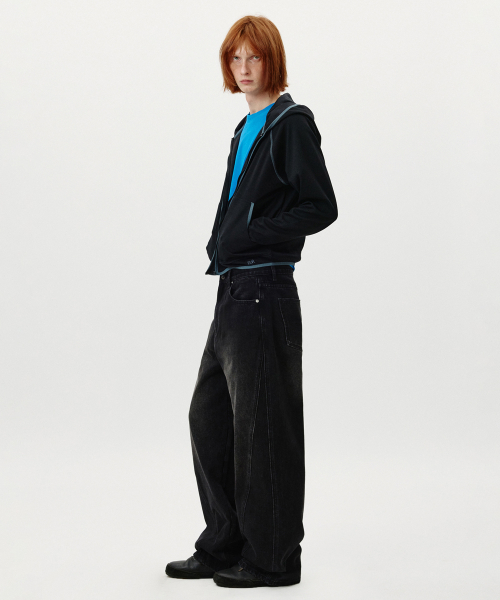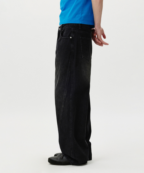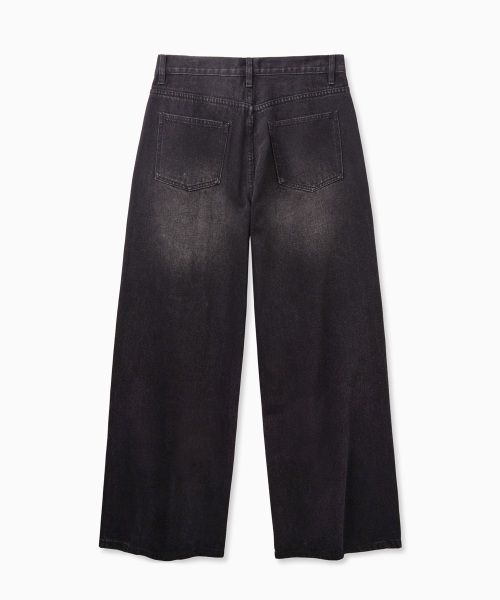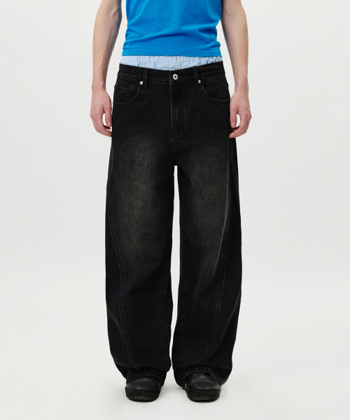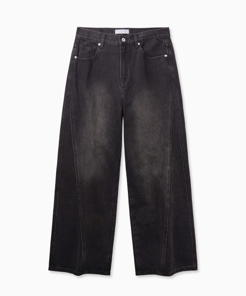 Curved Wide Washing Jeans (Black)