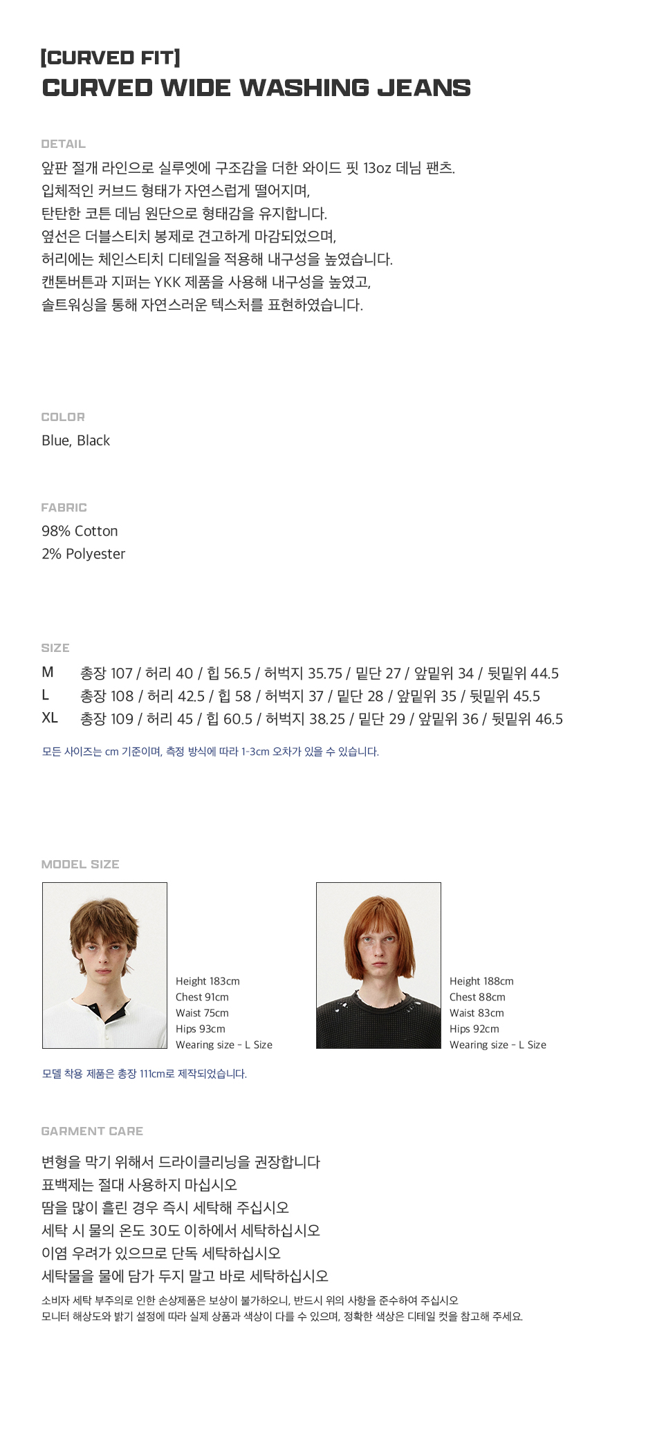 Curved Wide Washing Jeans (Blue)