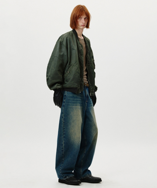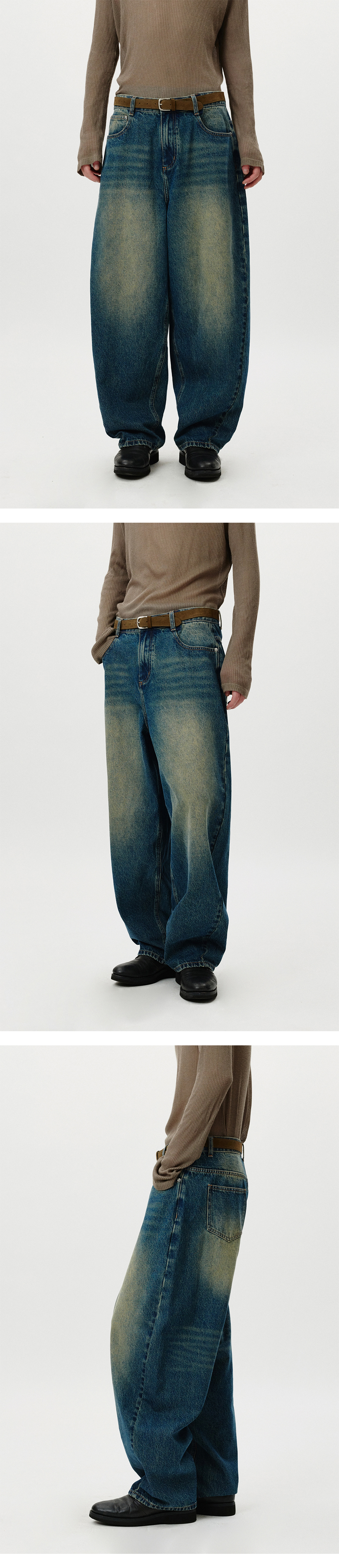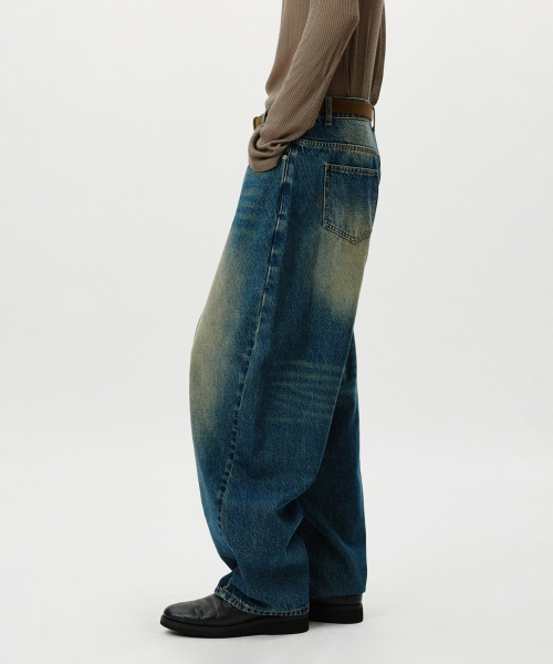 블루 워시드 벌룬 슈퍼 와이드 데님 팬츠