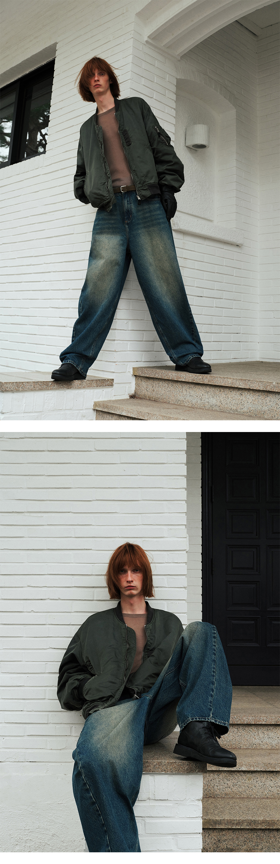 빈티지 스냅 데님 블루종 자켓 (WASHED INDIGO)