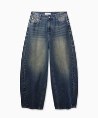 Curved Balloon Washing Jeans (Blue)